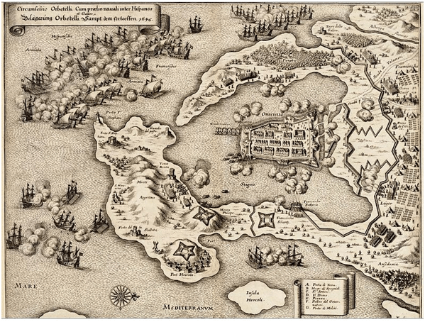 Combate naval que se libró el 14 de junio de 1646 frente a la localidad de Orbetello, entonces bajo dominio español, en la costa de la región de la Toscana, Italia. Comandó la flota francesa el almirante Armand de Maillé, marqués de Brézé, y la española, Miguel de Noronha, conde de Linhares. Esta última había sido enviada para acabar con el bloqueo de Orbetello y socorrer la localidad, que estaba siendo asediada desde el 12 de mayo por un ejército francés acaudillado por el príncipe Tomás Francisco de Saboya.