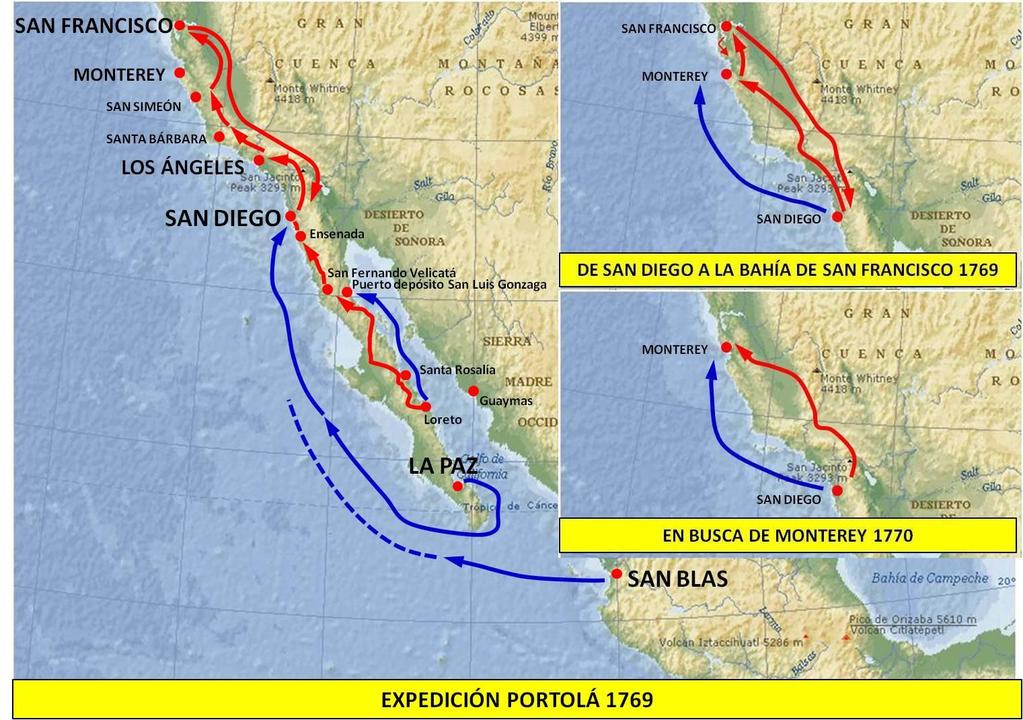 El Visitador de Nueva España José de Gálvez y Gallardo encargó a Gaspar de Portolá Rovira que colonizara la bahía de Monterrey descubierta por Sebastián Vizcaíno en 1602.
