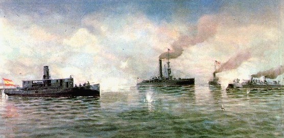 Cañonero USS Wilmington (1.571 T) con 8 cañones de 100 mm y 4 cañones de 3 libras.