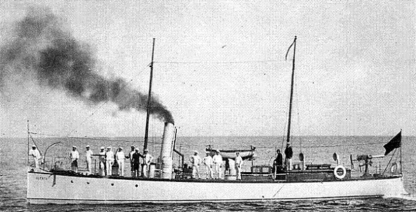 Guardacostas USS Hudson (128 T) con 2 cañones de 57 mm de tiro rápido y 1 ametralladora automática.