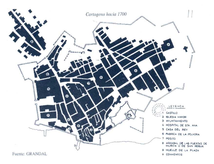 La precaria infraestructura naval de los Austrias tenía uno de sus mejores exponentes en el antiguo fondeadero de galeras de Cartagena, un pequeño puerto-refugio (el llamado mar de Mandarache), sin otro papel que el de custodia de las pequeñas escuadras que allí atracaban. No se realizaban labores de reparación o carenado y ni mucho menos de construcción naval. Estas tareas quedaban reservadas para las atarazanas de Barcelona o los astilleros de Santander o Bilbao.
