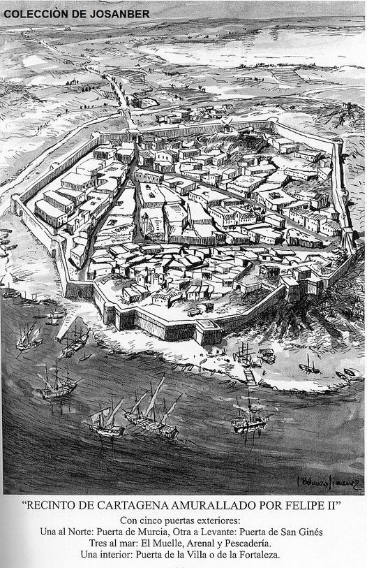 El Emperador, al regreso de la expedición a Argel, hizo escala en Cartagena acompañado del famoso maestro ingeniero Juan Bautista Antonelli, y una vez reconocida la situación, decidió, no sólo fortificar la ciudad, sino además comenzar una obra tan importante como las ATARAZANAS REALES, fábrica de bastimentos de boca y guerra.