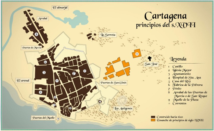 A lo largo de este siglo se construyeron los espigones de la Plaza y de San Leandro. Pero la verdadera preocupación por esta plaza, no se iniciará hasta el nombramiento de Andrés Dávalos como corregidor de las ciudades de Murcia, Lorca y Cartagena en 1.540.