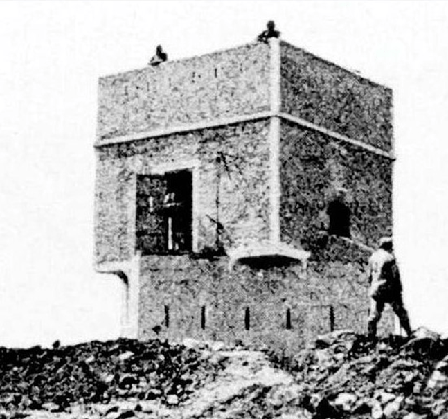 Era el elemento principal de un reducto, complejo defensivo. Tenía planta cuadrada, un solo piso y cuatro garitas blindadas metálicas en los ángulos de su azotea.